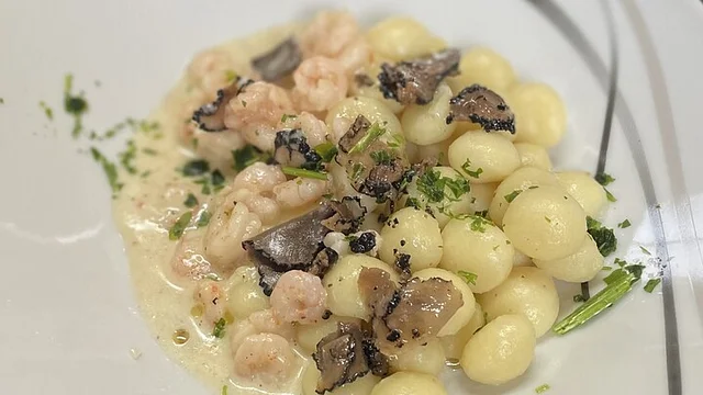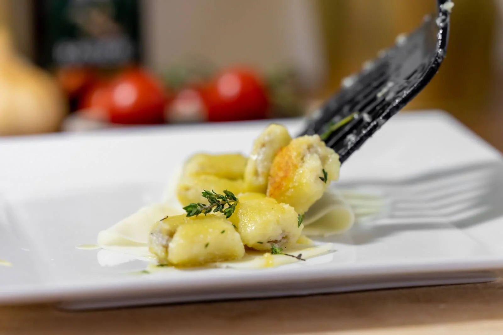 gefüllt mit feiner Trüffelcreme, serviert in aromatischer grüner Pesto-Sauce und...