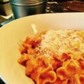 mit Tomatensauce, Basilikum und einer Nudelsorte nach Wahl