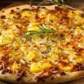 Mit Mozzarella fior dì Latte, Salsiccia, Zwiebeln und Kartoffelscheiben (ohne...