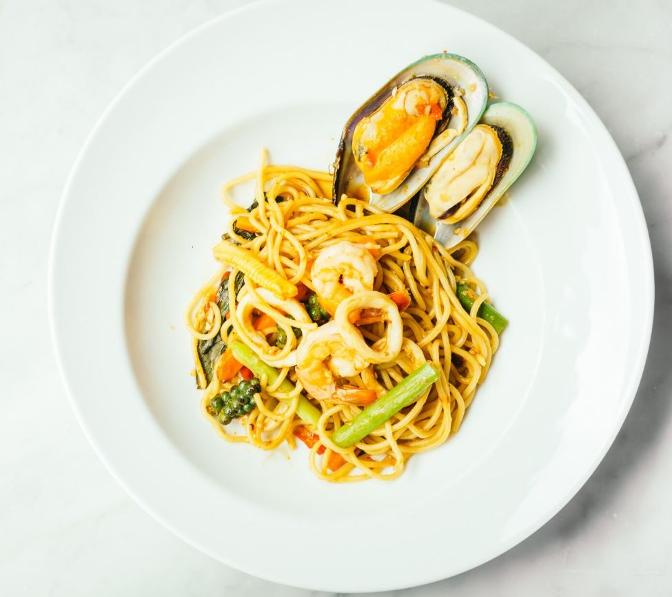 mit Meeresfrüchten, frischer Petersilie, Knoblauch,
